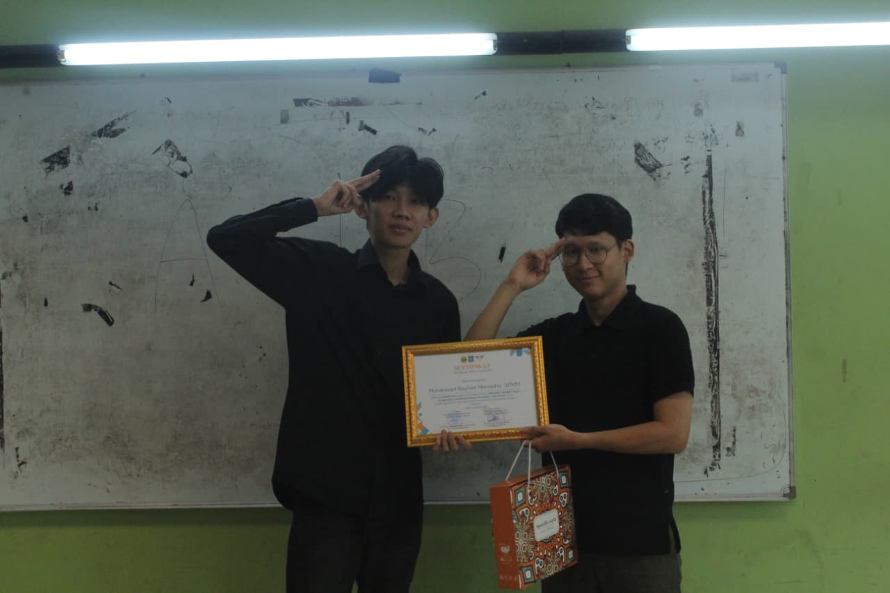 Pemaparan ini pun ditutup dengan pemberian sertifikat kepada Muhammad Rayhan Murtadha selaku pembicara dalam NALARI #2 dengan tema “Pengenalan Lomba Penalaran, Keilmiahan dan Bisnis” dan diakhiri dengan sesi dokumentasi bersama.